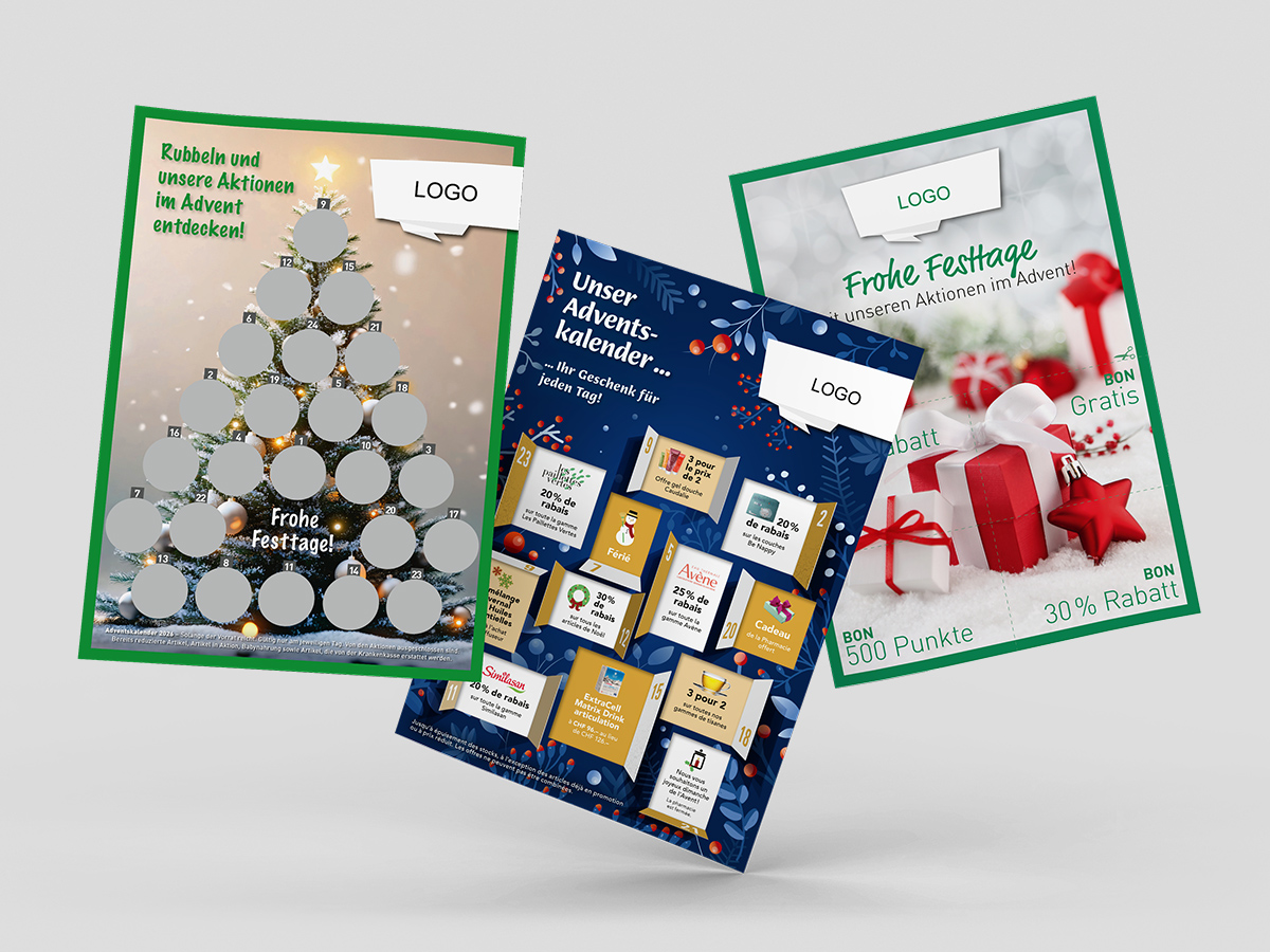 Darunter befinden sich unter anderem saisonale Angebote wie Adventskalender, Weihnachtskarten oder Sommerflyer. Aber auch kleine Projekte wie Terminkarten oder die Personalisierung von QR-Rechnungen werden während des Jahres angeboten.